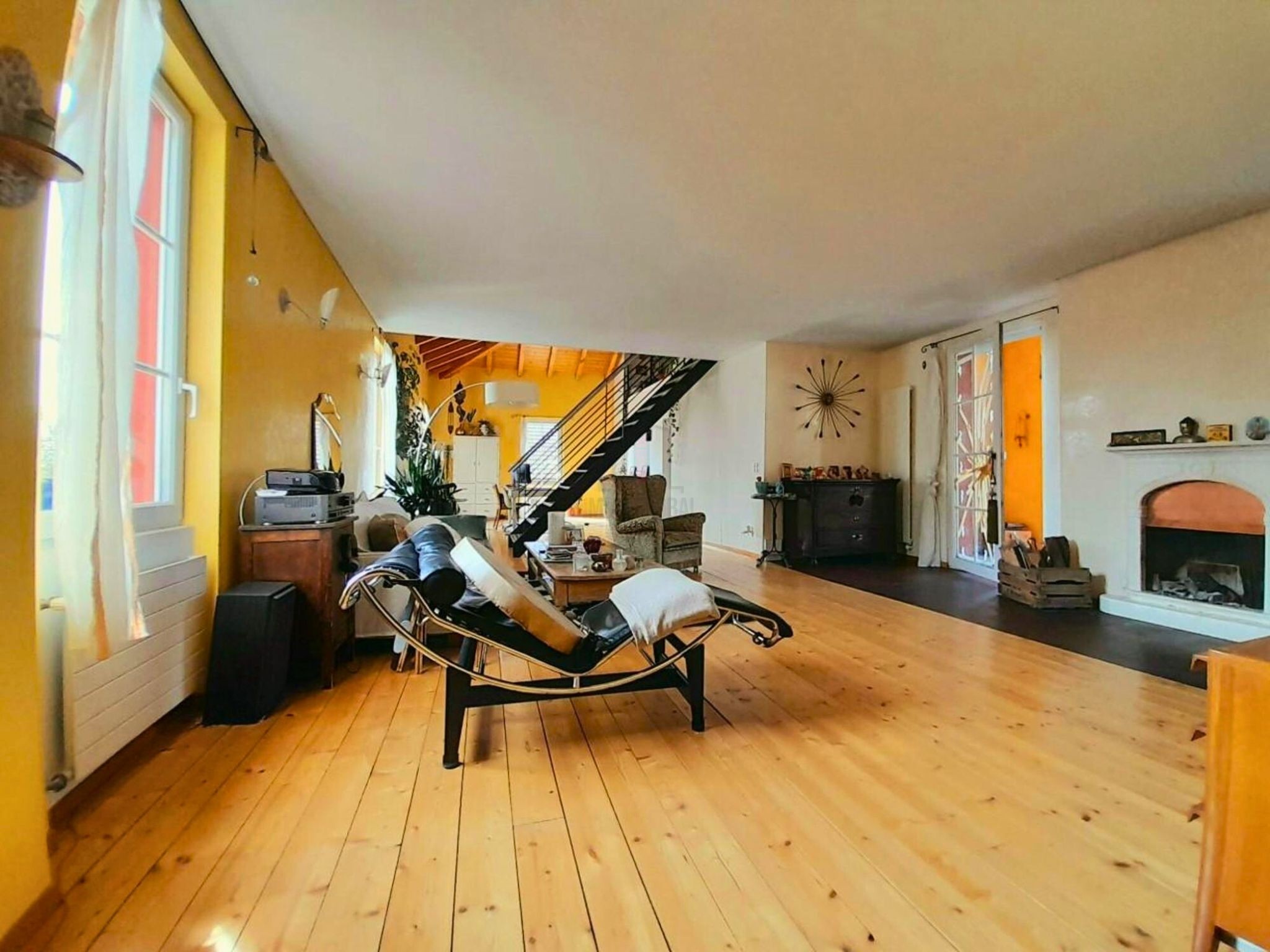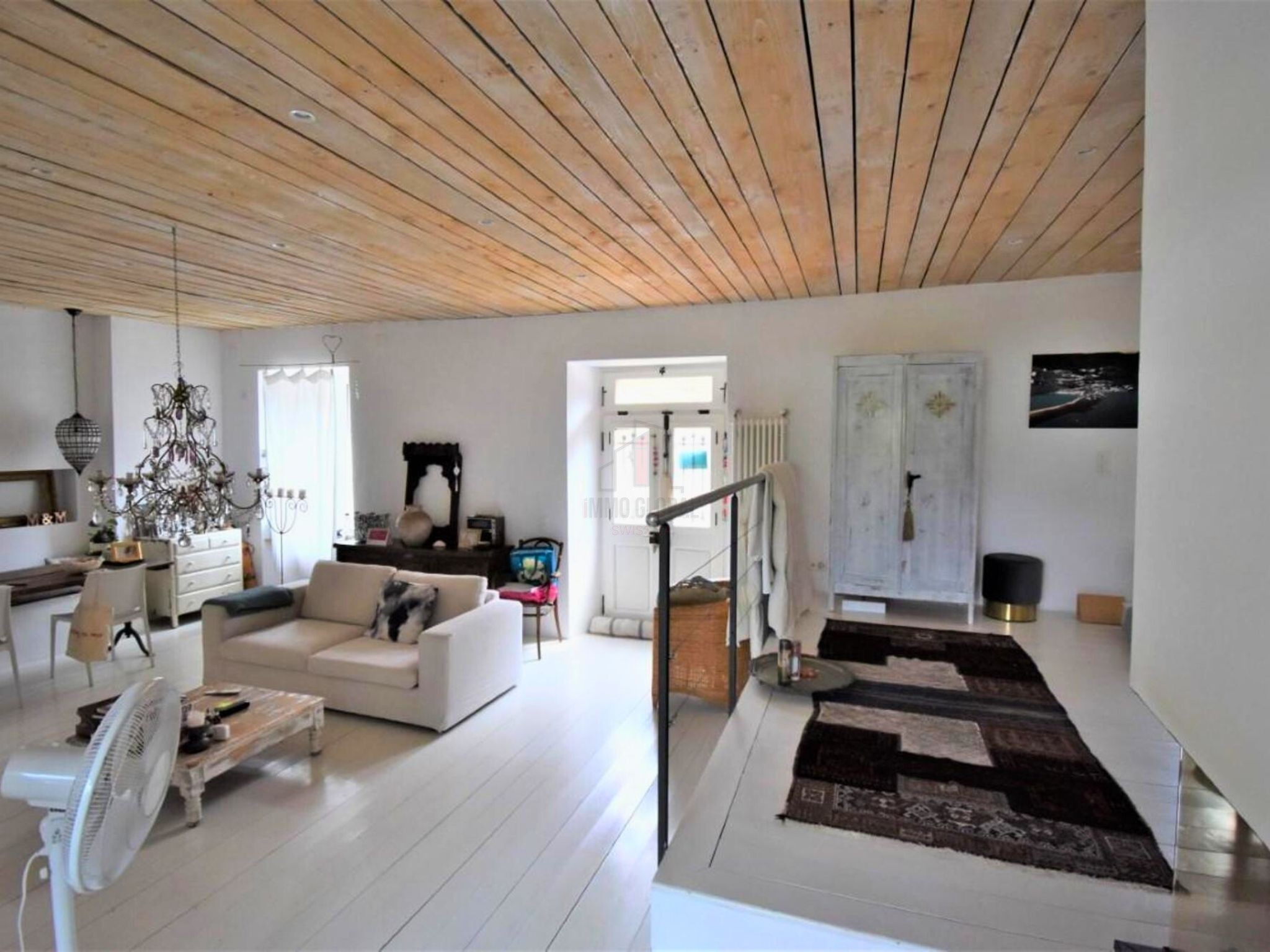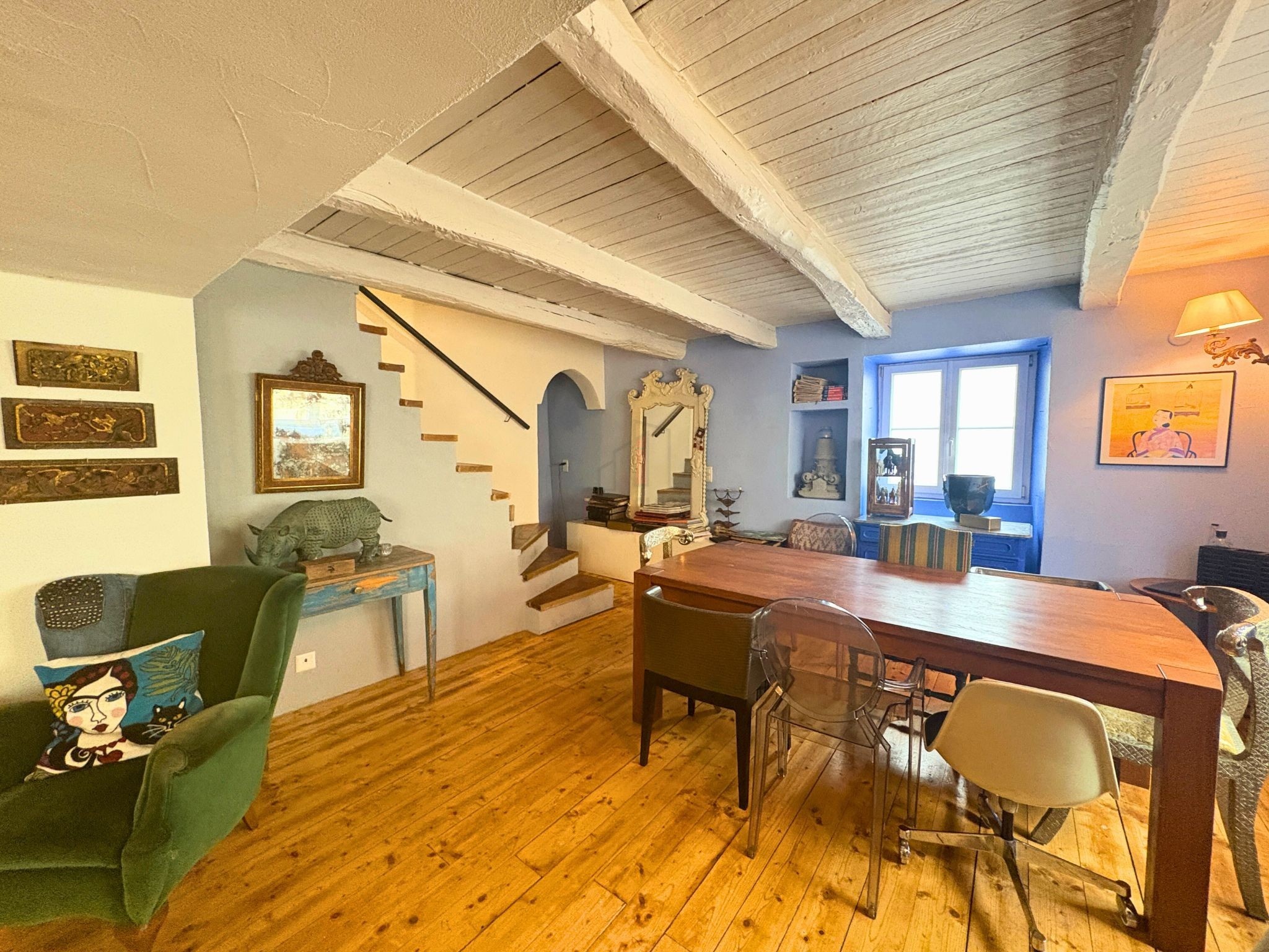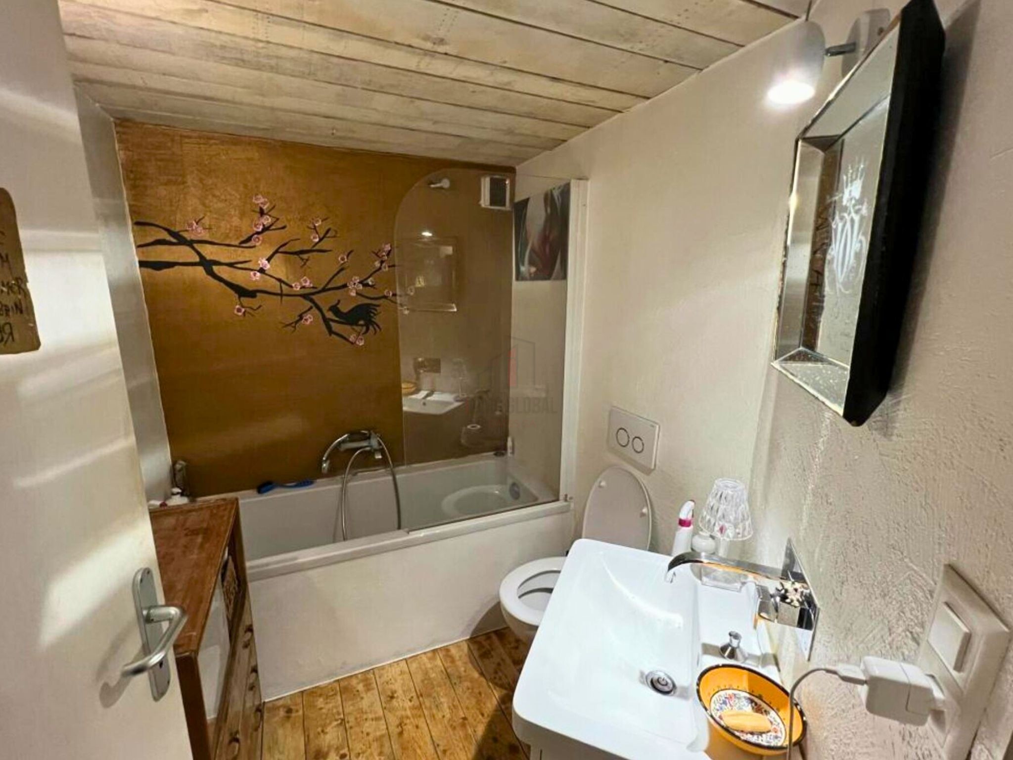 The third apartment, approximately 160 sqm, is a magnificent loft arranged on two levels. The first level comprises a semi-separated kitchen, a living room with a fireplace and access to a beautiful, spacious, and sunny terrace, a bedroom, a bathroom with a bathtub, and a private laundry. The second level offers a spacious open-plan area used as the master bedroom, complete with a walk-in closet and a bathroom with a shower. The property is completed by a large cellar.