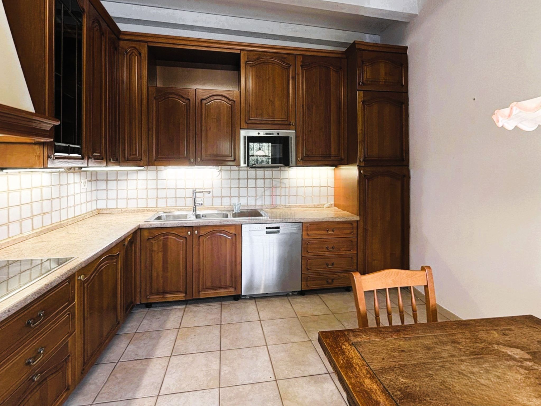 The entrance on the ground floor opens to a large, cozy, and functional eat-in kitchen, perfect for daily family life. The bright and airy living room offers direct access to the terrace and private garden at the back, creating a relaxed and private atmosphere. The well-maintained outdoor spaces are perfect for outdoor moments or for nature lovers. The ground floor is completed by a convenient service bathroom.