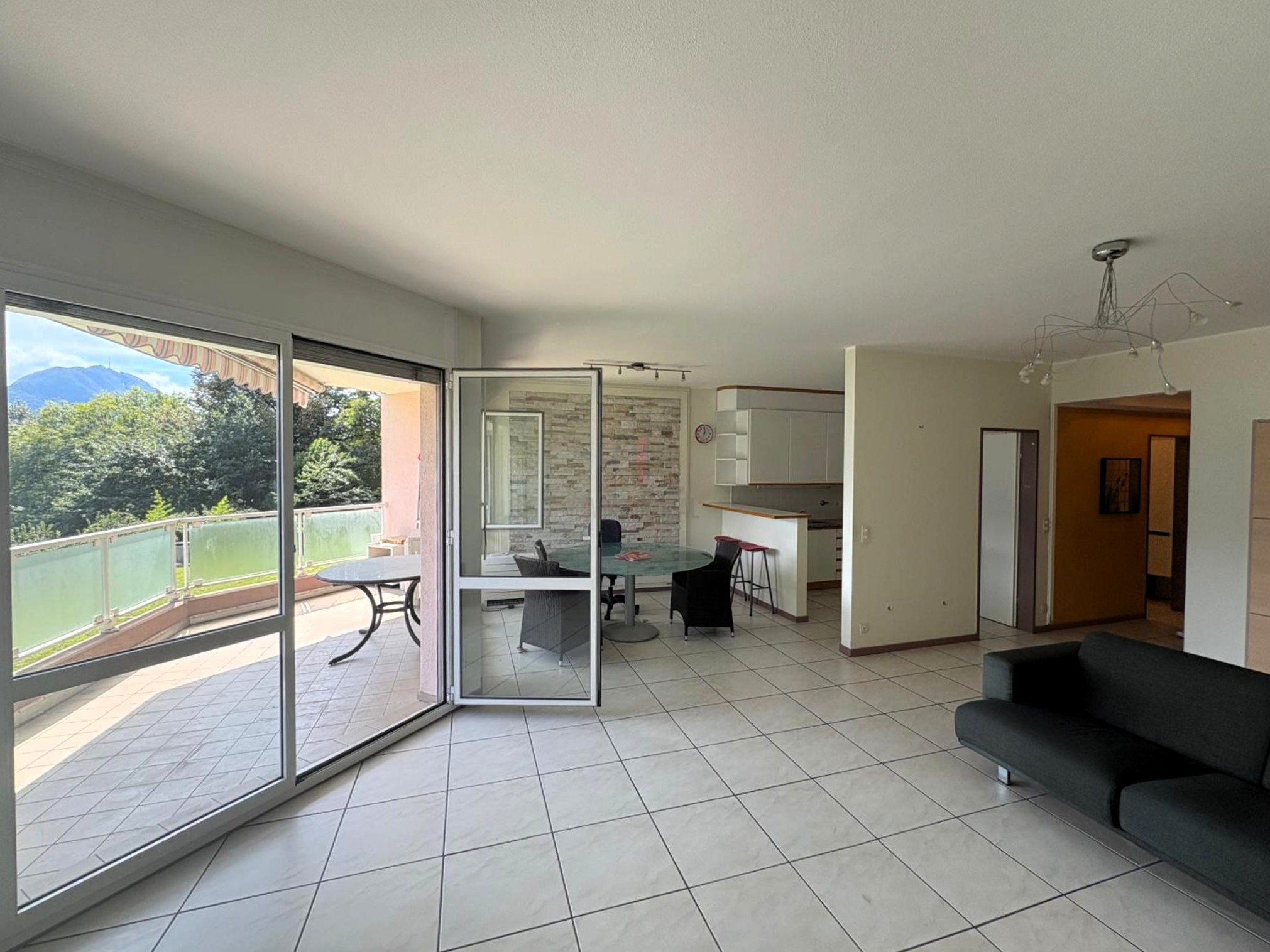 Der großzügige und helle Wohnbereich beherbergt ein Wohnzimmer mit einer modernen und gut organisierten Küche, perfekt für gesellige Momente und für diejenigen, die funktionale und einladende Umgebungen lieben. Vom Wohnzimmer aus gelangt man auf den Balkon, einen angenehmen Außenbereich, der einen eindrucksvollen Blick auf den Luganer See und die umliegenden Berge bietet, ideal zum Entspannen oder zum Essen im Freien.