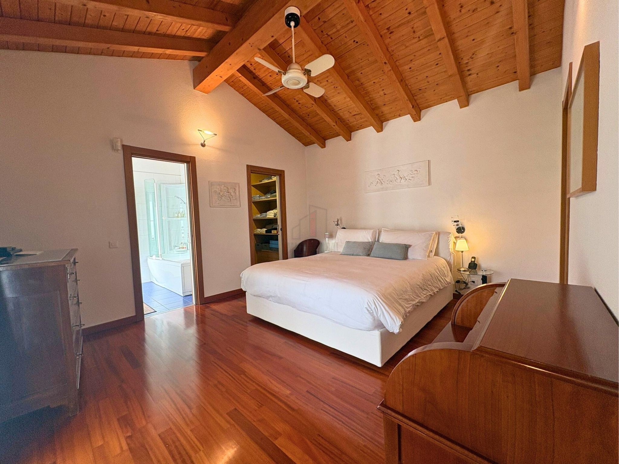 Der Schlafbereich mit den Mansardendecken und sichtbaren Balken vermittelt ein Gefühl von Wärme und Intimität, das anderswo schwer zu finden ist. Das Hauptschlafzimmer, ausgestattet mit zwei begehbaren Kleiderschränken, eigenem Bad und Terrasse, ist ein echtes persönliches Heiligtum. Der Stock wird komplettiert durch ein zweites Doppelzimmer, ein Kinderzimmer und ein Badezimmer, das für die täglichen Bedürfnisse der Familie ausgelegt ist. Bequeme Treppen führen zum Dachgeschoss, wo ein weiteres Doppelzimmer einen ruhigen Rückzugsort bietet. Im Untergeschoss befinden sich ein Hobbyraum für Freizeitaktivitäten, ein großer Keller, ein Bad mit Dusche, eine geräumige Waschküche, ein Schutzraum und eine Doppelgarage mit zusätzlichem Platz.