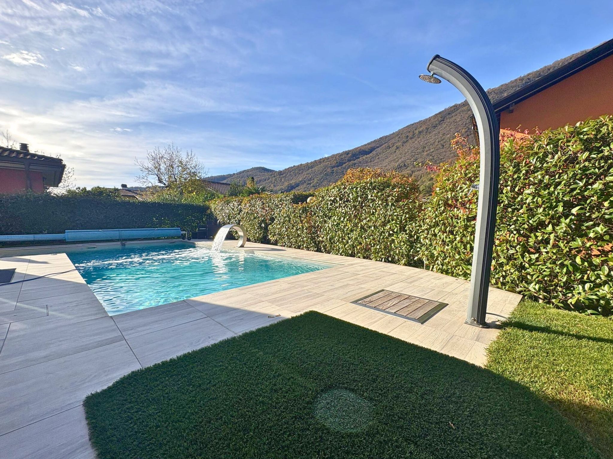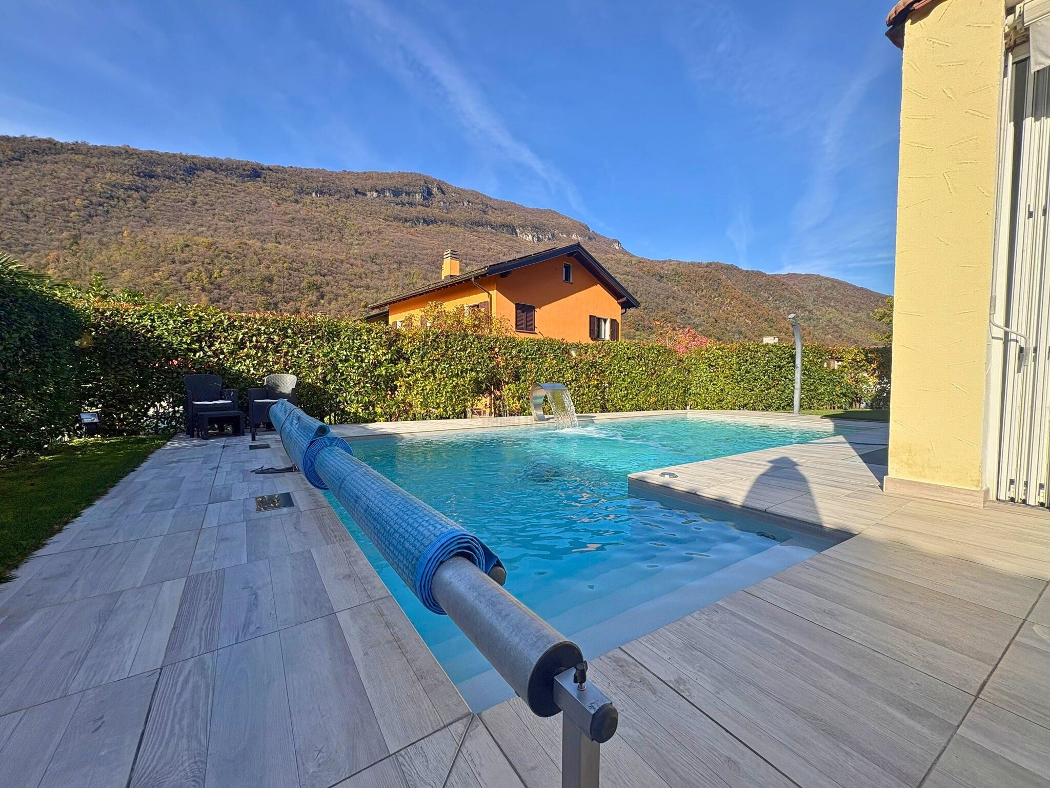In a charming and tranquil residential setting, just a few steps from public transport stops and the numerous services offered by the municipality of Riva San Vitale, we present a splendid villa built in the 2000s and renovated over time. The property stands out for its spacious and bright interior spaces, modern finishes, and generous ceiling heights in the sleeping area. Outside, a well-tended garden with a heated pool and a comfortable covered terrace provide the ideal setting for relaxation during the beautiful season. The property is also suitable as a secondary residence.